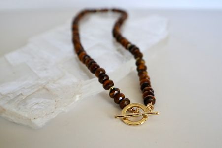 0 savesElevate your style with our stunning Sable Necklace, a sleek piece that combines confidence and timelessness. This necklace is crafted with tiger's eye, a protective and grounding stone that is known to bring clarity, focus, and good fortune. This piece can be worn with the clasp in the front or the back and layered with other necklaces for multiple looks.